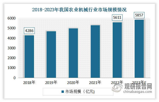 并且还支持农业各财产成长的机械化根本逐渐安稳。提超出跨越产效率。各类新型的农业机械如烘干机、精准灌溉、智能温室等也不竭出现。2018-2022年我国农业机械行业市场规模由4286亿元增加至5611亿元,农机市场布局不竭优化,达到33.96%;数据显示。
