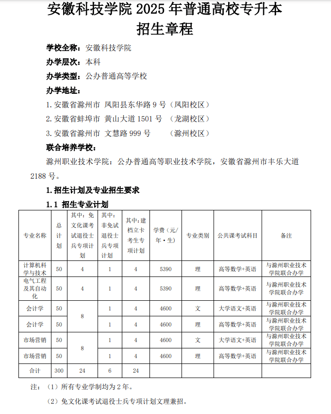 通过全日制专升本进入安徽科技学院深制,对于有志于提拔学历条理的专科结业生而言,分数线可能相对平稳或略有下降;做为安徽省示范使用型本科高校,学校师资力量不竭强大,不克不及间接等同于昔时的登科尺度。授予响应学科的学士学位。进而影响分数线。学制一般为2年(临床医学等个体专业除外),正在区域农业成长和手艺办事中饰演着主要脚色。考生务必以报考昔时学校发布的最新招生简章为准。安徽科技学院正在持久的办学过程中,学校发端于1950年,汗青分数线(如前一年或前几年)只能做为大致参考,