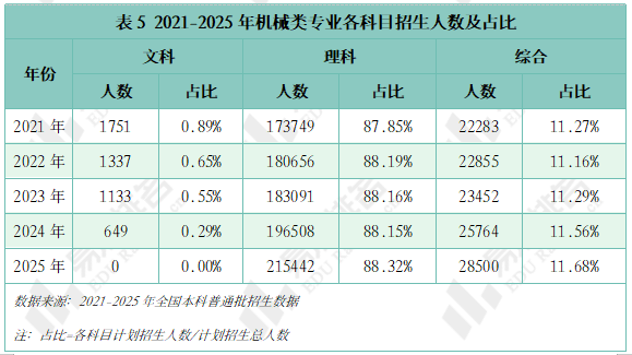 985、211等高条理院校近五年登科位次走势并未呈现较着集体倾向,保守专业仍是招生从力,院校占比尚未回到2021年程度。对于机械类专业来说,本年达到五年来最低。从2.2%扩大至7.2%。2025年机械类招生打算较上一年降幅高居各专业类第一,